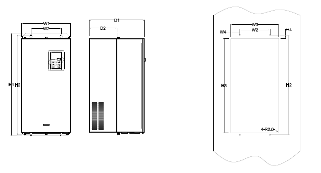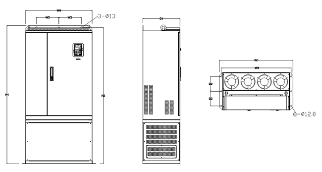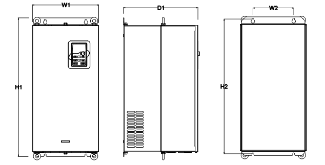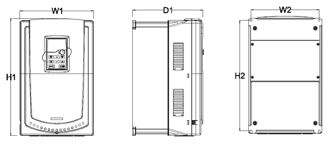 a.1/ Kích thước cho loại biến tần 3 pha 380V (-15%)~440V(+10%)