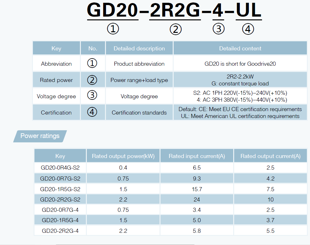 - Biến tần mini đa năng GD20 là dòng biến tần mini dùng cho các ứng dụng chế tạo máy cơ bản cỡ nhỏ với công suất đến 2.2 kW.