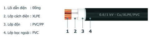 Cáp điện 4 lõi không có giáp bảo vệ 0.6/1 kV - Cu/XLPE/PVC, Cáp Goldcup