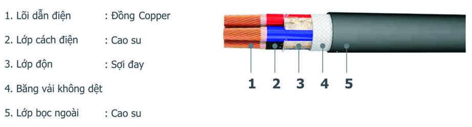 Cáp điện Goldcup 3, 4 lõi vỏ bọc cao su - Cu/NR 450/750V