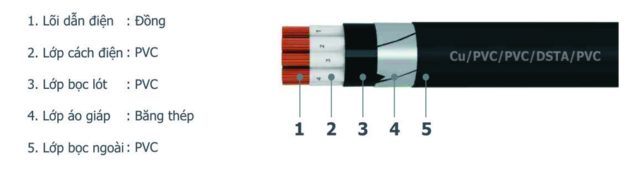 Cáp điều khiển có giáp (cáp ngầm) 0.6/1kV - Cu/PVC/PVC/DSTA/PVC