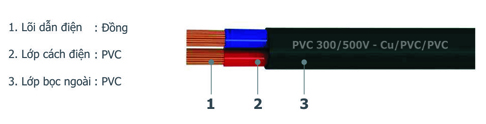 Dây điện 2 lõi ruột mềm bọc cách điện PVC 300/500V - Cu/PVC/PVC